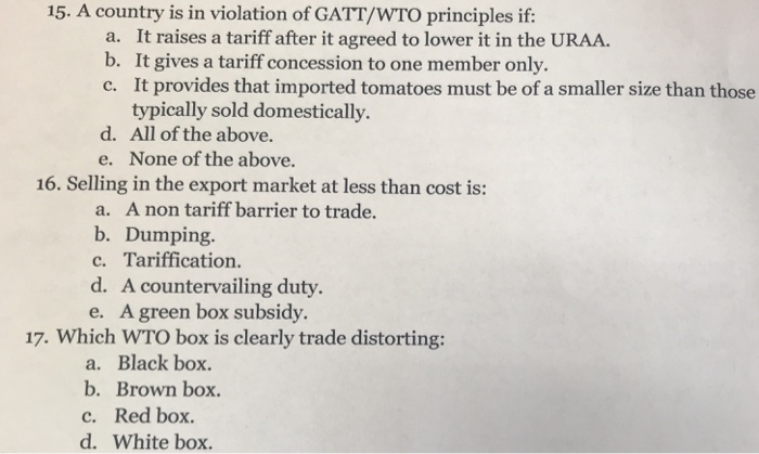 Solved 15 A Country Is In Violation Of Gatt Wto Principles Chegg Com